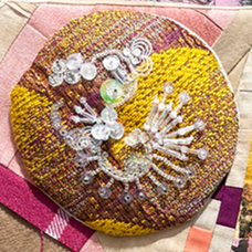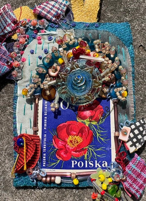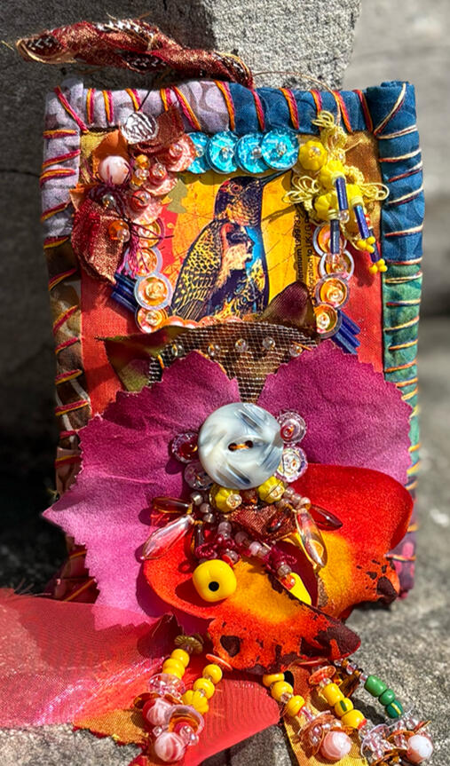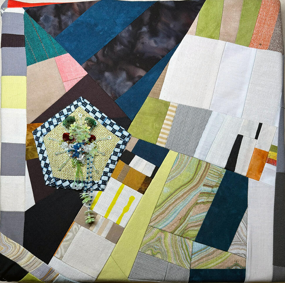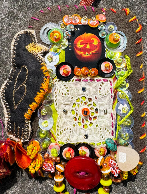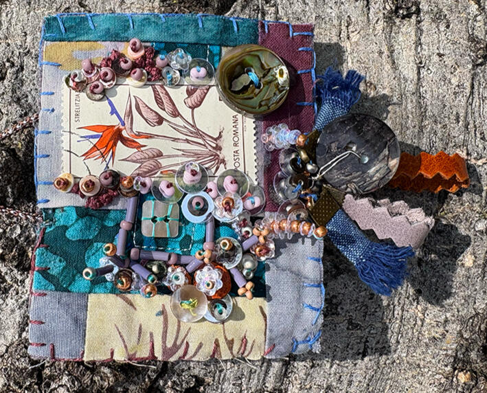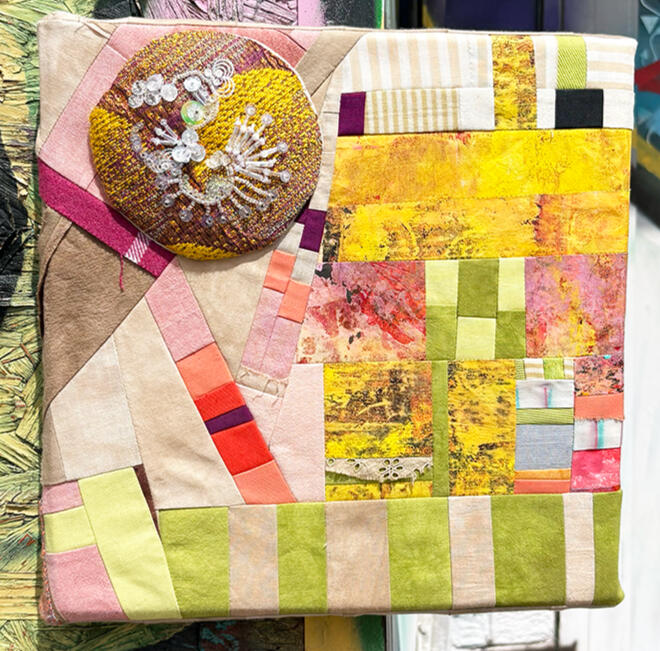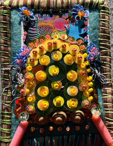 Experiment. Play. Discover. Recover.Amy Garten is an interdisciplinary artist based in Nashville, Tennessee, whose practice is rooted in reuse, repair, and the belief that everyday materials hold quiet beauty. Working with secondhand fabrics, textiles, glass, and plastics, she builds layered compositions that celebrate transformation—where a scrap of cloth or a piece of packaging becomes a carrier of memory, color, and renewed purpose.Garten’s work is guided by intuition and process: she lets the inherent color, transparency, and texture of found materials determine form, proportion, and palette.Her aesthetic leans maximal—dense with color and tactile surfaces—balancing soft fiber structure with flashes of light from translucent elements. Stitching, assemblage, and mixed-media mark-making create a sense of movement and accumulation, inviting viewers to look closely at how materials interact.In addition to her studio practice, Garten volunteers with SMART Art, supporting education and sustainability by making donated art materials available to people of all abilities and encouraging creative expression through reuse.